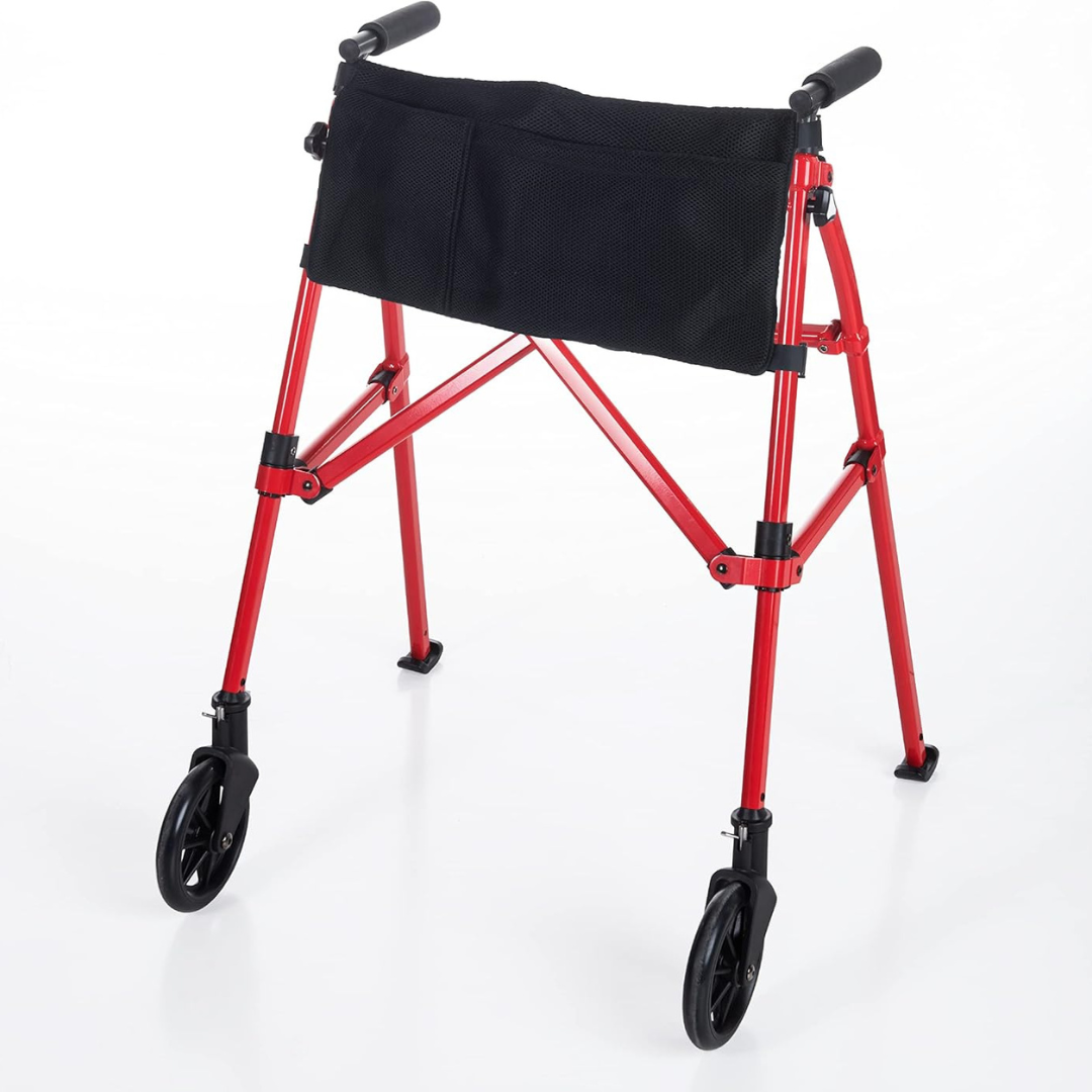 Andador plegable EZ Fold-N-Go: andador ligero y plegable con bolsa organizadora – Rosa real