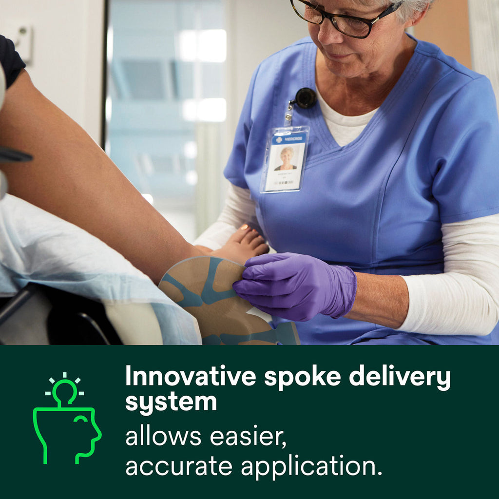 • El sistema de administración de radios patentado con pestañas sin adhesivo permite una fácil aplicación, incluso con guantes, para una experiencia clínica más positiva.