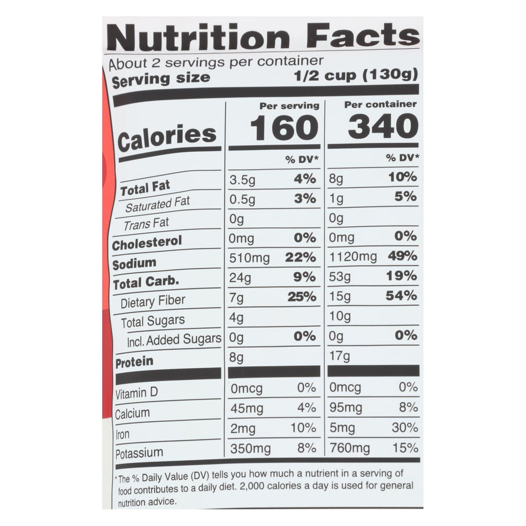 Ingredientes: agua, garbanzos, cebollas, aceite de aguacate, sal marina, ajo, fenogreco, cúrcuma, comino, cilantro seco, jengibre en polvo, cilantro molido, canela, semillas de mostaza amarilla, pimienta blanca, cardamomo molido, pimienta de cayena.