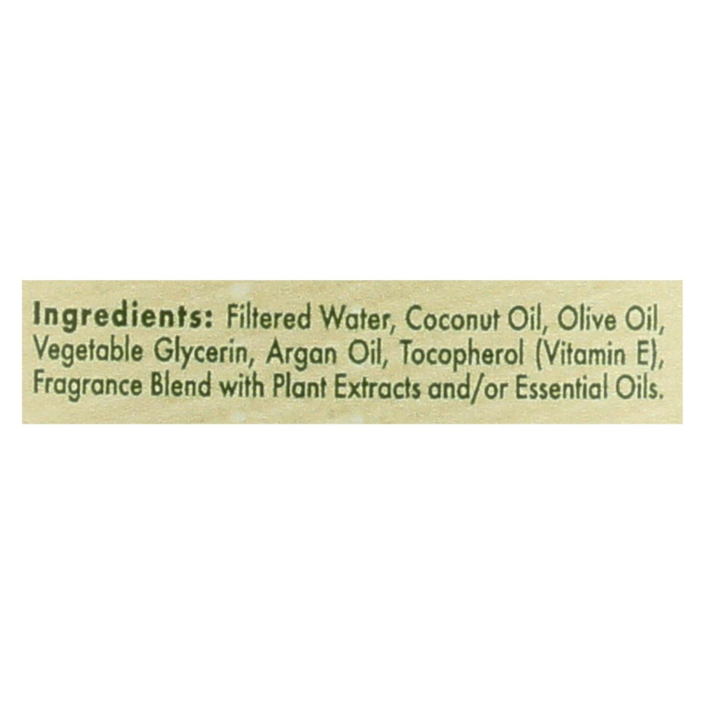 Ingredientes: agua filtrada, aceite de coco, aceite de oliva, glicerina vegetal, aceite de argán, tocoferol, vitamina E, mezcla de fragancias con extractos de plantas y/o aceites esenciales.
