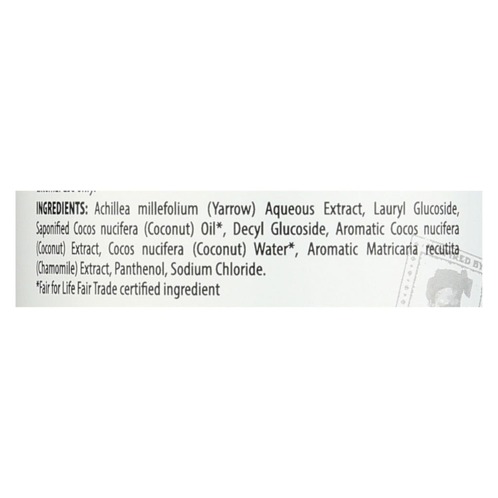 Ingredientes: Achillea millefolium; milenrama; extracto acuoso; lauril glucósido; cocos nucifera saponificado; aceite de coco; decil glucósido; cocos nucifera; extracto; agua; matricaria recutita aromática; manzanilla; pantenol; cloruro de sodio