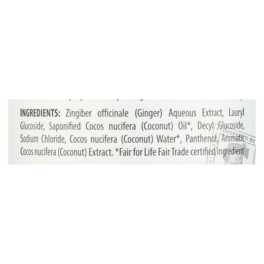 Ingredientes: Zingiber officinale, jengibre, extracto acuoso, lauril glucósido, coco saponificado, aceite de coco, decil glucósido, cloruro de sodio, coco, agua, pantenol, extracto.