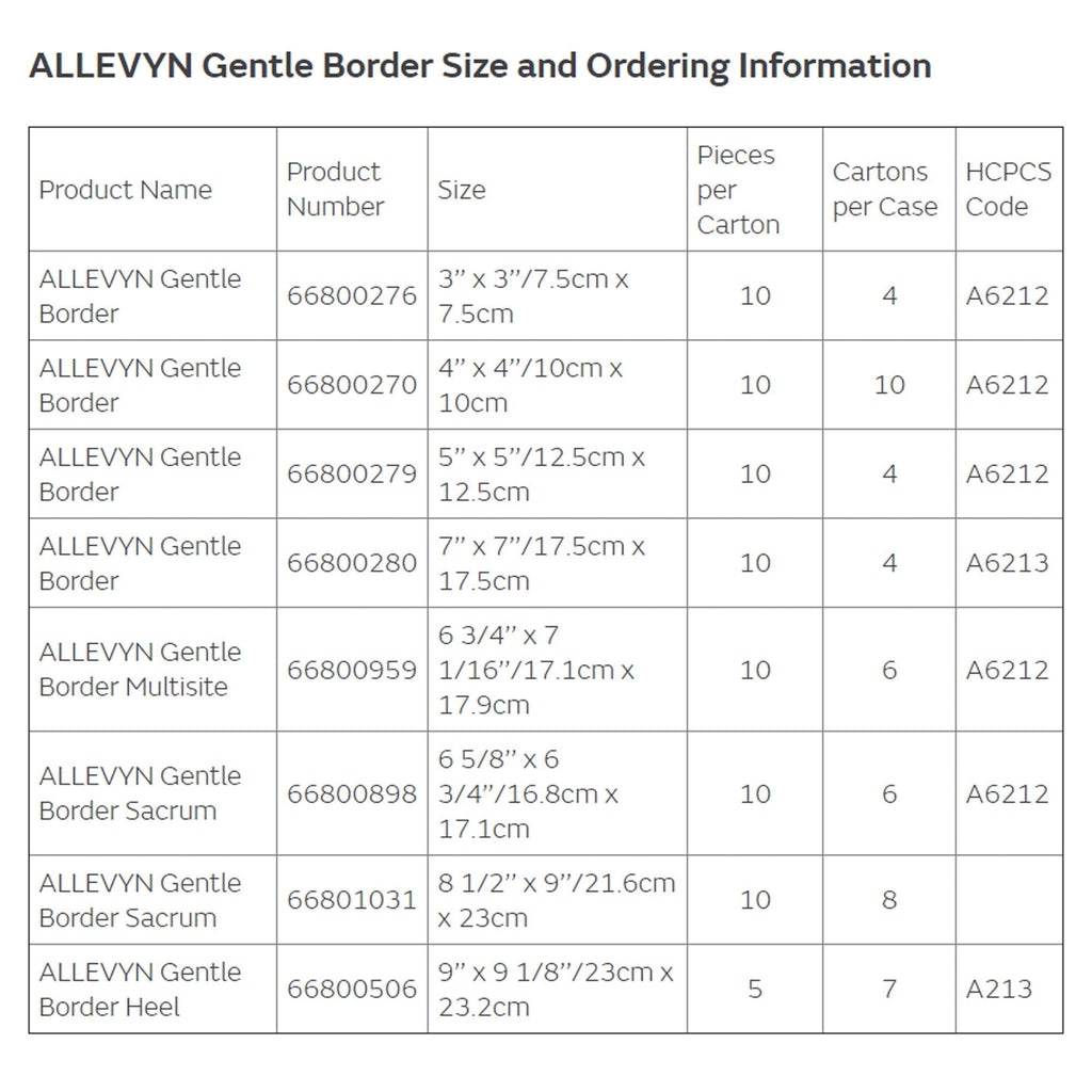 • Los apósitos suaves Allevyn con bordes mantienen el equilibrio de líquidos para promover una curación más rápida y reducir el dolor.
