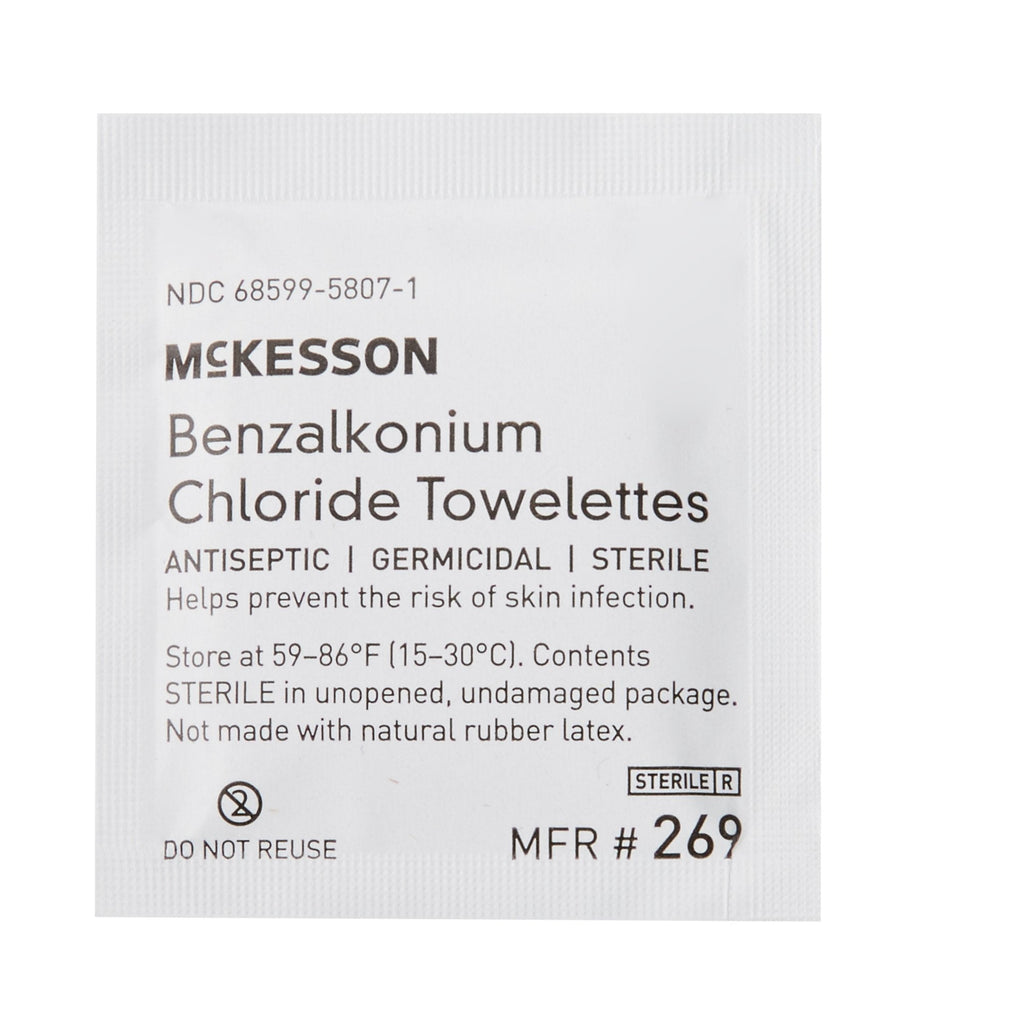 • Las toallitas BZK de McKesson están diseñadas para la limpieza antiséptica general tanto para pacientes como para médicos.