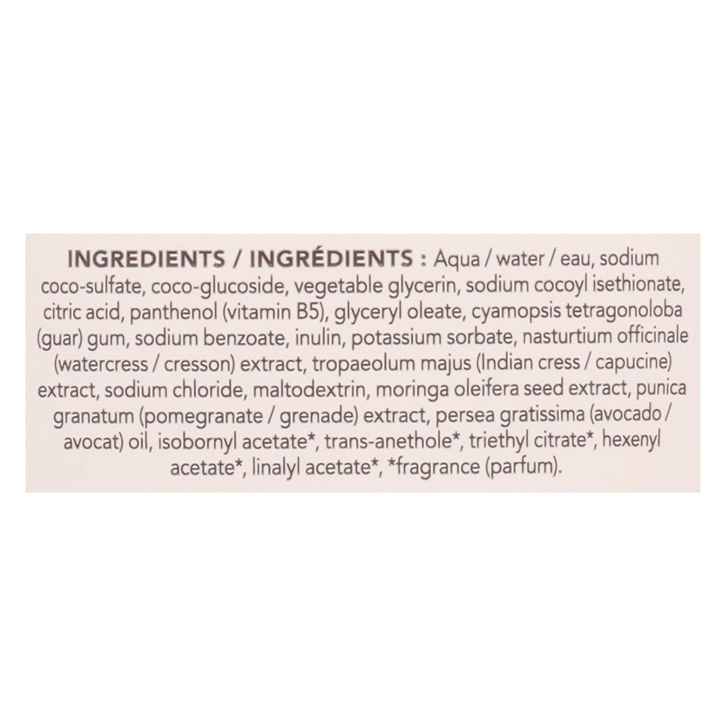 Cuidado natural. Cuidado y reparación del color. Aceite de aguacate y granada. Protege el color y restaura la hidratación. Hipoalergénico. Las hojas de berro y berro indio son conocidas por sus propiedades regenerativas y su alto contenido en minerales, vitaminas y factores de crecimiento. Estos poderosos elementos se extraen y se utilizan en nuestras fórmulas para fortalecer y revitalizar el cabello de la raíz a las puntas. Los ingredientes de este producto disminuyen la adhesión de contaminantes y desintoxican el cabello y el cuero cabelludo. Ecológico. Plantamos árboles para el planeta. Verificado por EWG: para tu salud. Ewg.org. Verificado por EWG significa que este producto evita los ingredientes problemáticos de EWG, está comprometido con la transparencia total y opera bajo buenas prácticas de fabricación. UL ecologo: producto certificado por su impacto ambiental reducido. Ver atributos específicos evaluados: ul.com/el ul 2845.