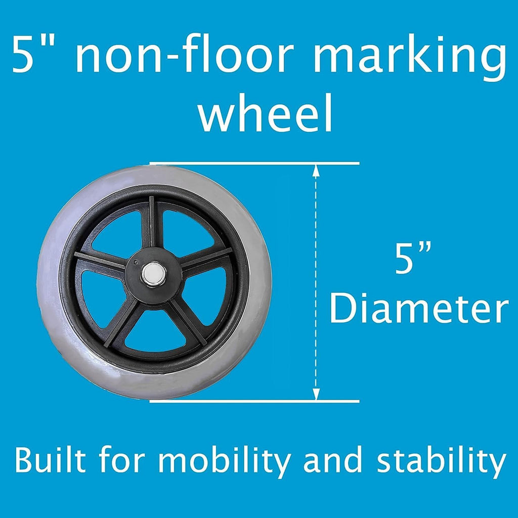 Answer: Standard walkers have no wheels and offer maximum stability. Two wheel walkers roll more easily for continuous steps. Wheel diameter and glide tips affect indoor and outdoor use. See the product page for details.