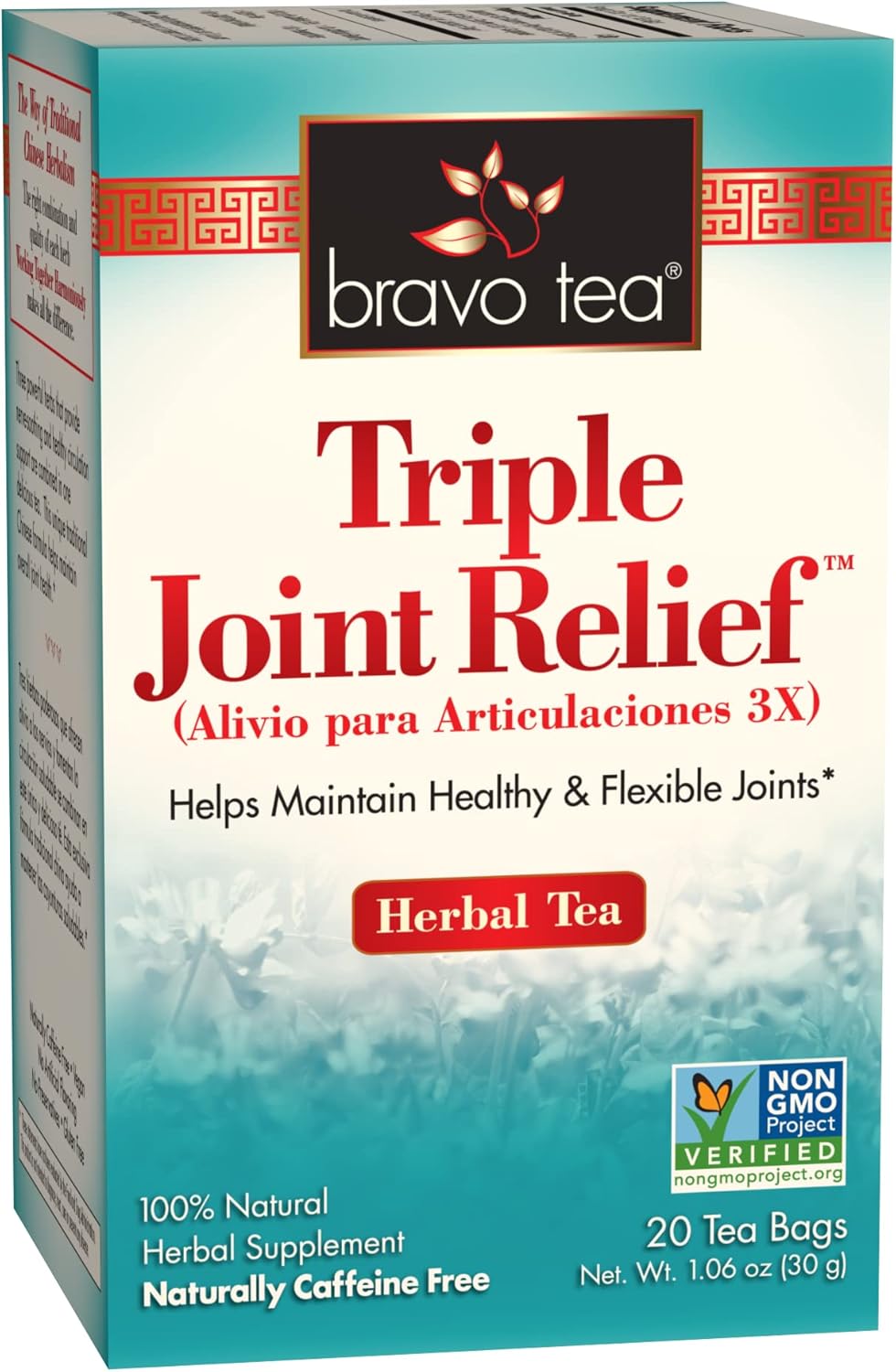 Answer: Bravo Teas And Herbs; Triple Joint Reief; Three powerful herbs that provide nerve; soothing and healthy circulation support are combined in one delicious tea. This unique traditional Eastern formula helps maintain overall joint health