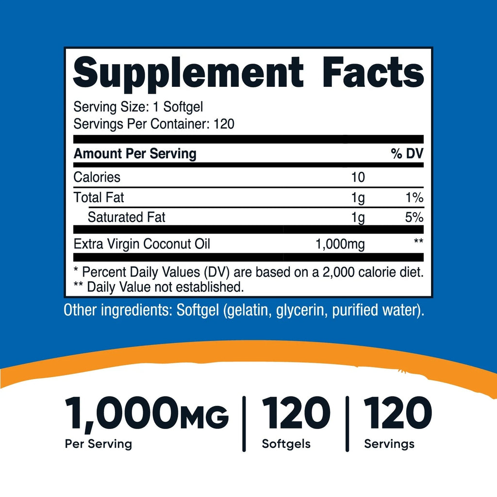 • 1000 mg de aceite de coco de alta calidad por porción