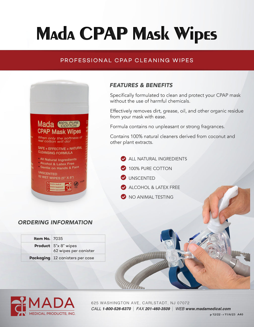Toallitas de calidad profesional que eliminan eficazmente la suciedad, la grasa, los aceites y otros residuos orgánicos de las máscaras CPAP con facilidad.