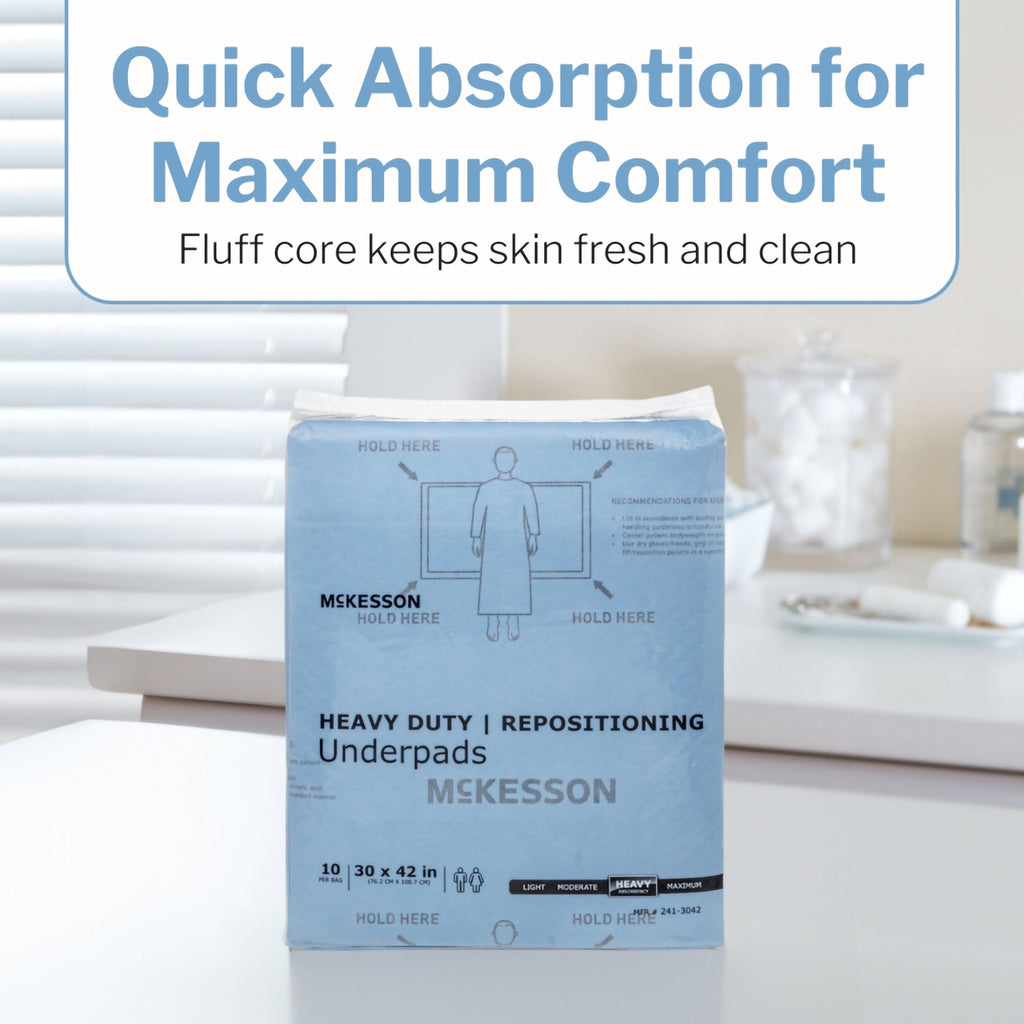 Question: What is Disposable Underpad McKesson 30 X 42 Inch Super Absorbent Polymer Heavy Absorbency,