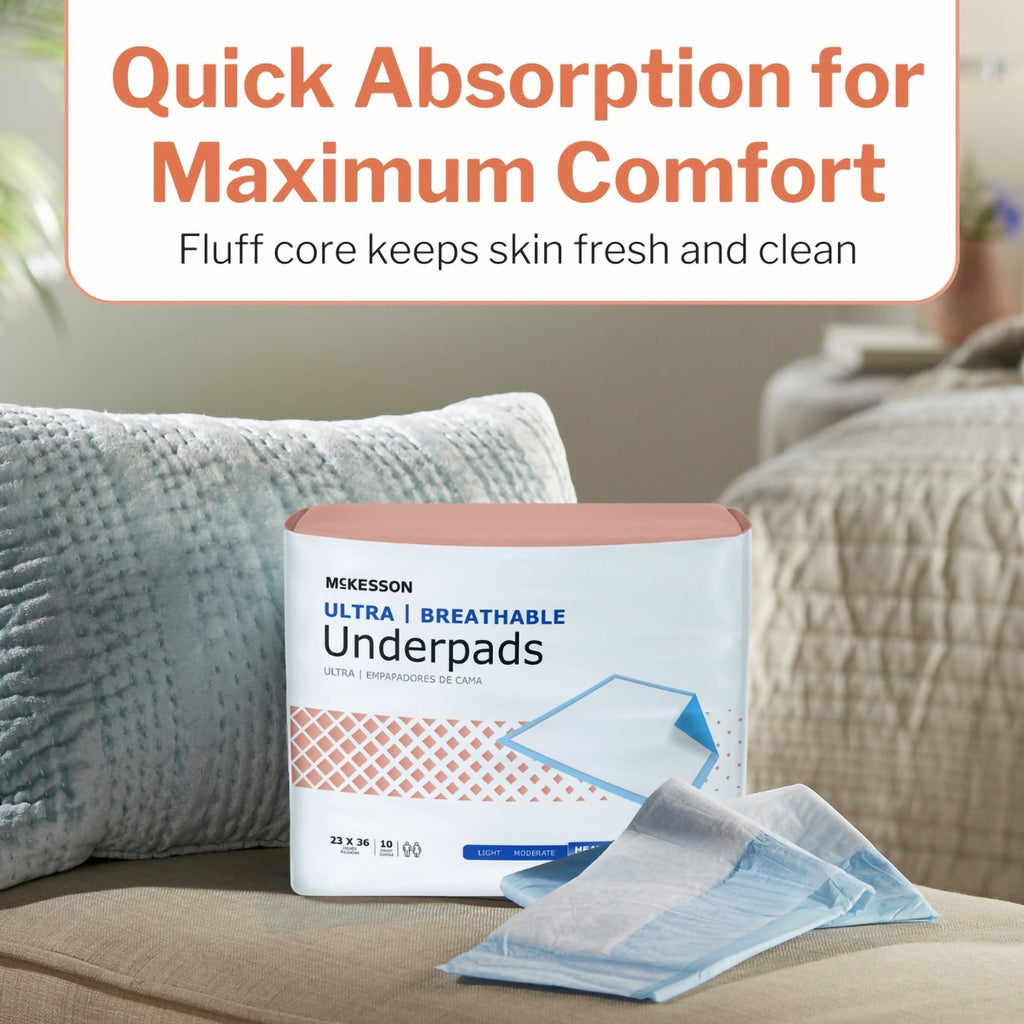 Question: What is Disposable Underpad McKesson Ultra Breathable 23 X 36 Inch Fluff / Polymer Heavy Absorbency,