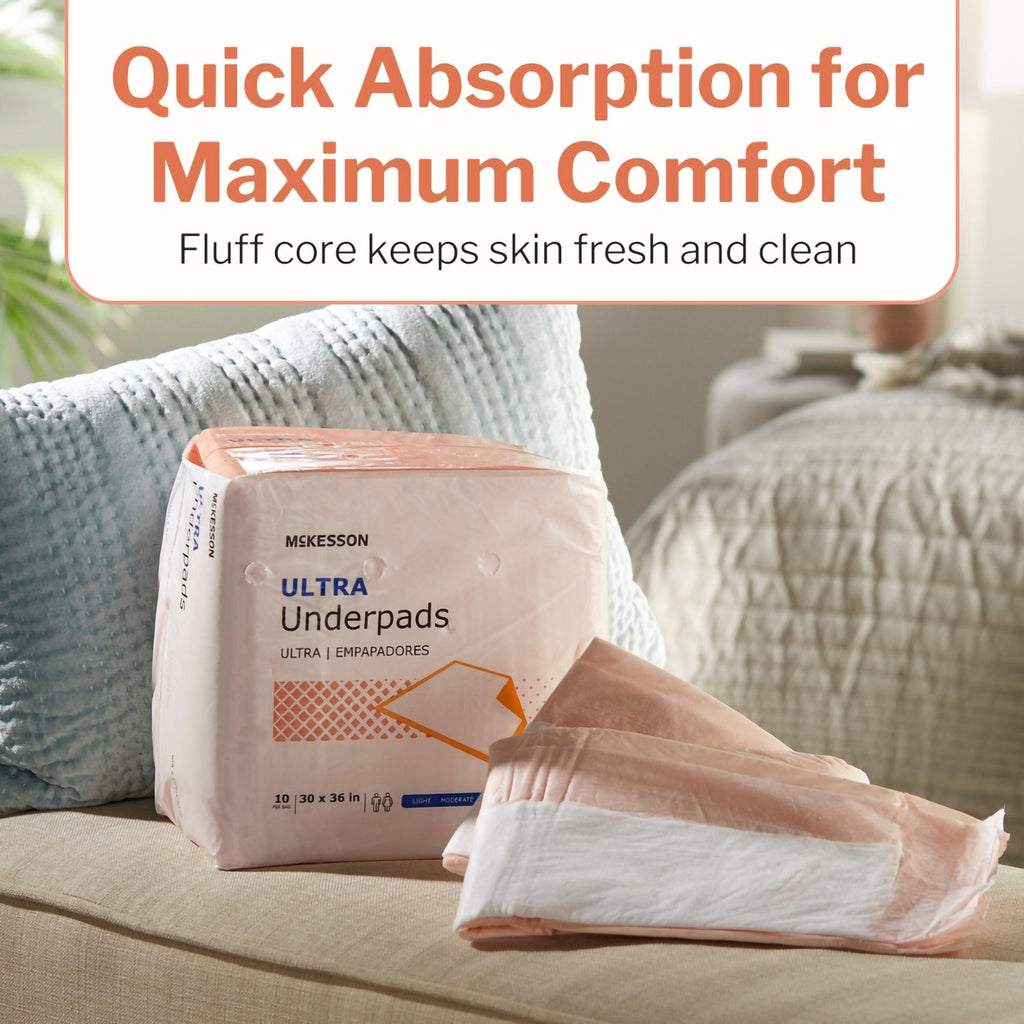 Question: What is Disposable Underpad McKesson Ultra 30 X 36 Inch Fluff / Polymer Heavy Absorbency,