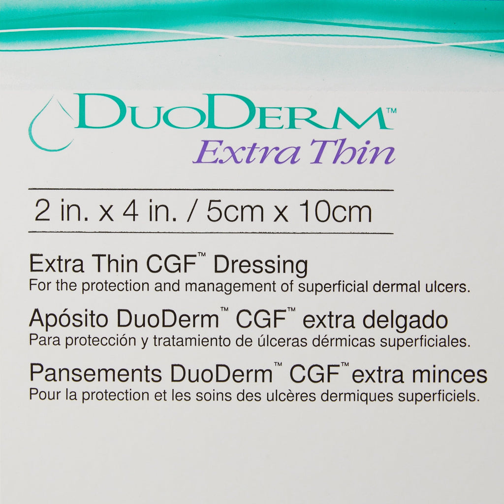 • DuoDERM® CGF® Extra Thin es un apósito hidrocoloide que retiene la humedad para heridas superficiales con poco o ningún exudado y para la intervención temprana en aquellos con riesgo de daño en la piel.