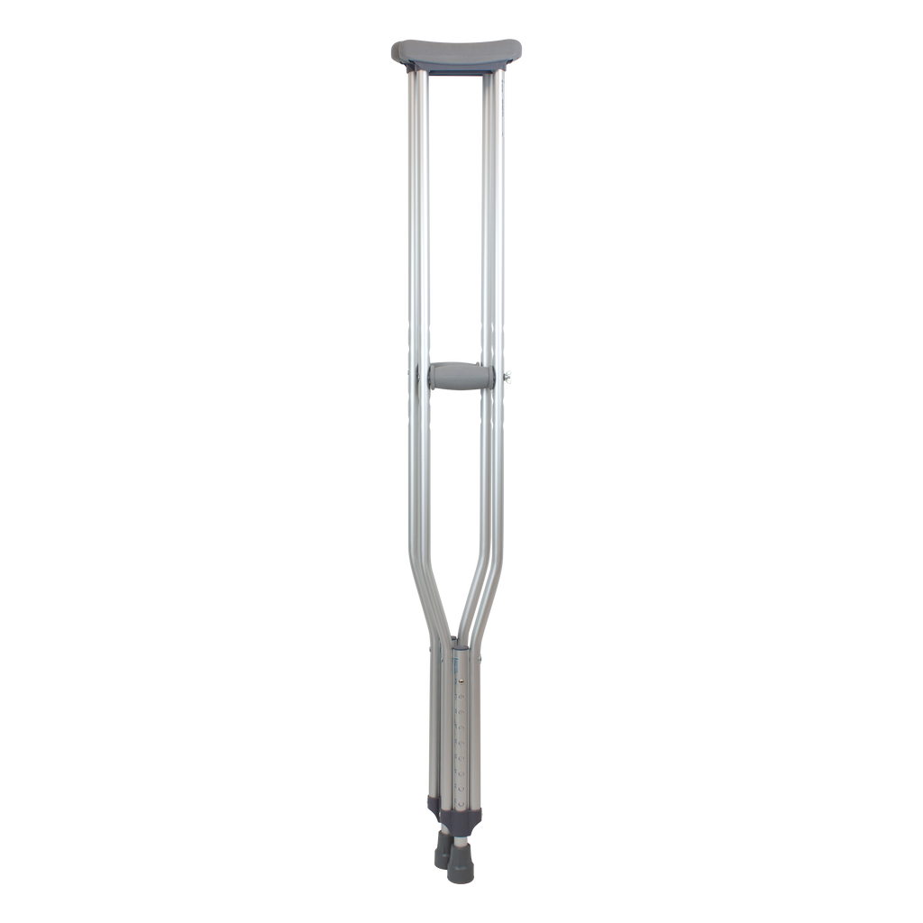 Las muletas de aluminio Dynarex son estándar y ligeras, y ofrecen mayor estabilidad. Las almohadillas acolchadas para las axilas y las empuñaduras seguras ofrecen mayor comodidad durante su uso. Su diseño sin herramientas se ajusta fácilmente en incrementos de 2,5 cm para adaptarse a las preferencias del usuario. Las empuñaduras ajustables reducen la tensión y promueven una postura correcta. Las muletas de aluminio también están completamente equipadas con extremos arqueados para evitar resbalones y aumentar la flexibilidad sin causar grietas. Su construcción duradera soporta hasta 136 kg (300 lb). Ideales para centros de atención domiciliaria, centros de rehabilitación, escuelas y hospitales.