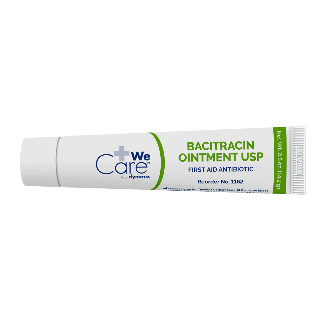 El ungüento de bacitracina Dynarex USP es un antibiótico tópico diseñado para minimizar el riesgo de infección en cortes, raspaduras y quemaduras menores. Este ungüento de alta calidad está disponible en prácticos sobres de un solo uso para facilitar su empaque y en tubos de fácil apertura para una aplicación rápida. El ungüento de bacitracina Dynarex USP es ideal para una amplia variedad de entornos, como primeros auxilios y emergencias, cuidados a largo plazo y en el hogar.