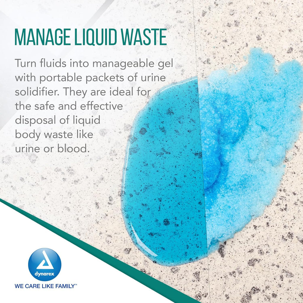 -  Manejo de Desechos Líquidos: Convierta los líquidos en un gel manejable con los sobres portátiles de solidificador de orina. Son ideales para la eliminación segura y eficaz de desechos líquidos corporales como la orina o la sangre.