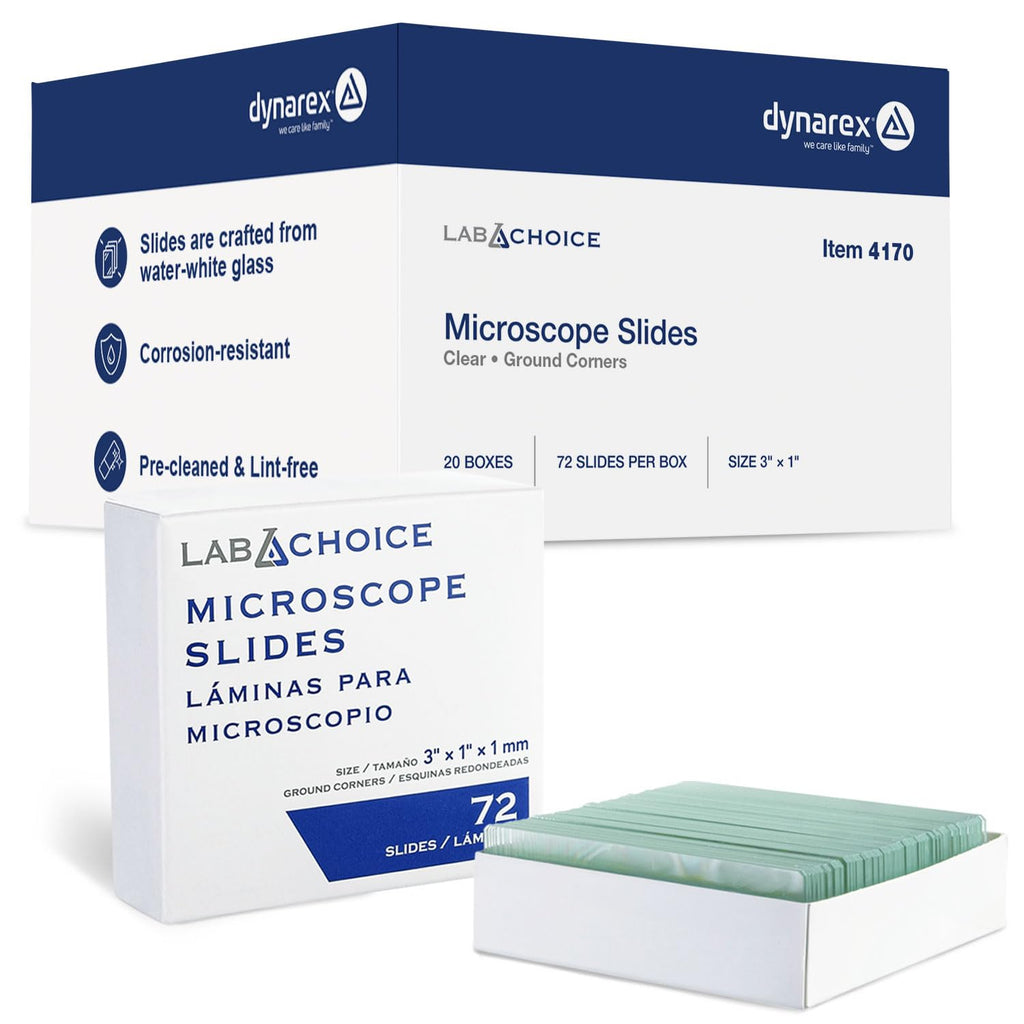 Los portaobjetos Dynarex LabChoice Frosted Microscope son transparentes, fabricados con vidrio transparente con bordes esmerilados para un manejo cómodo. Están diseñados con un grosor uniforme y superficies lisas para una calidad de imagen óptima. Estos prácticos portaobjetos, resistentes a la corrosión, vienen prelimpiados y sin pelusa, para obtener resultados precisos y consistentes. Los portaobjetos cuentan con superficies de escritura con bordes esmerilados, lo que permite una identificación rápida y sencilla de las muestras. Disponibles en una variedad de colores.