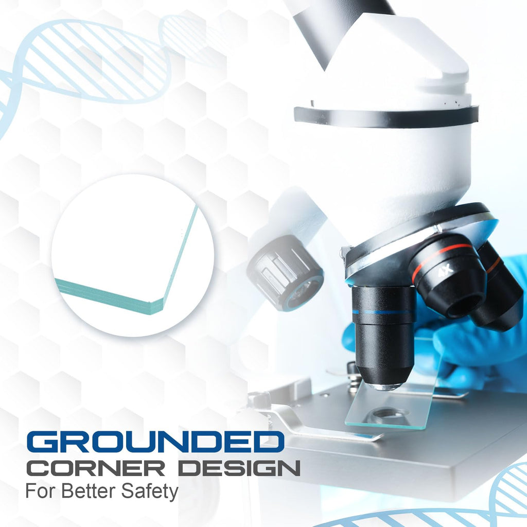 • Los portaobjetos transparentes están prelimpiados y listos para usar para una comodidad óptima.