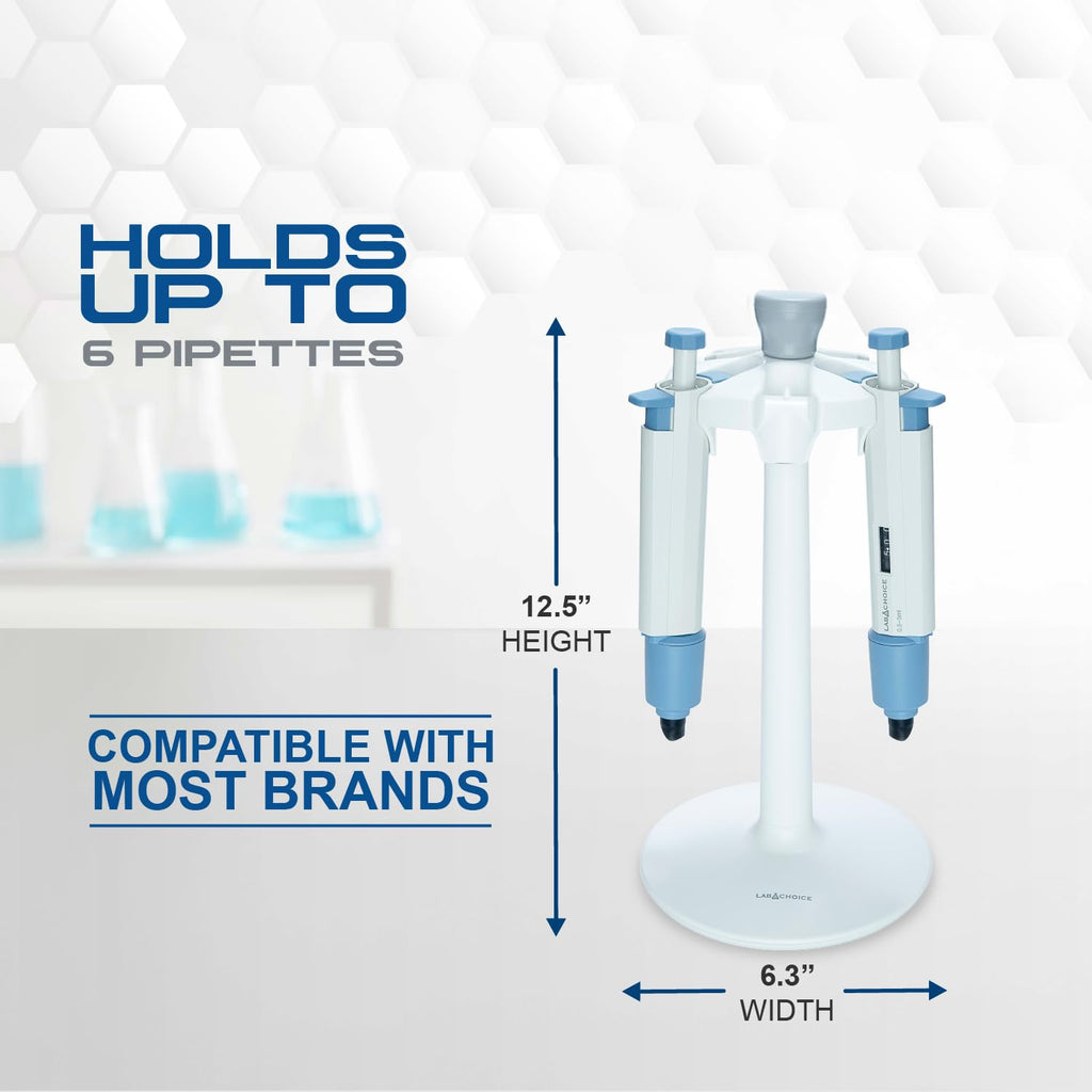 • Organice su laboratorio con facilidad: mantenga su espacio de trabajo ordenado y profesional con este soporte redondo para pipetas, diseñado para albergar hasta seis micropipetas de laboratorio en un diseño elegante y compacto.