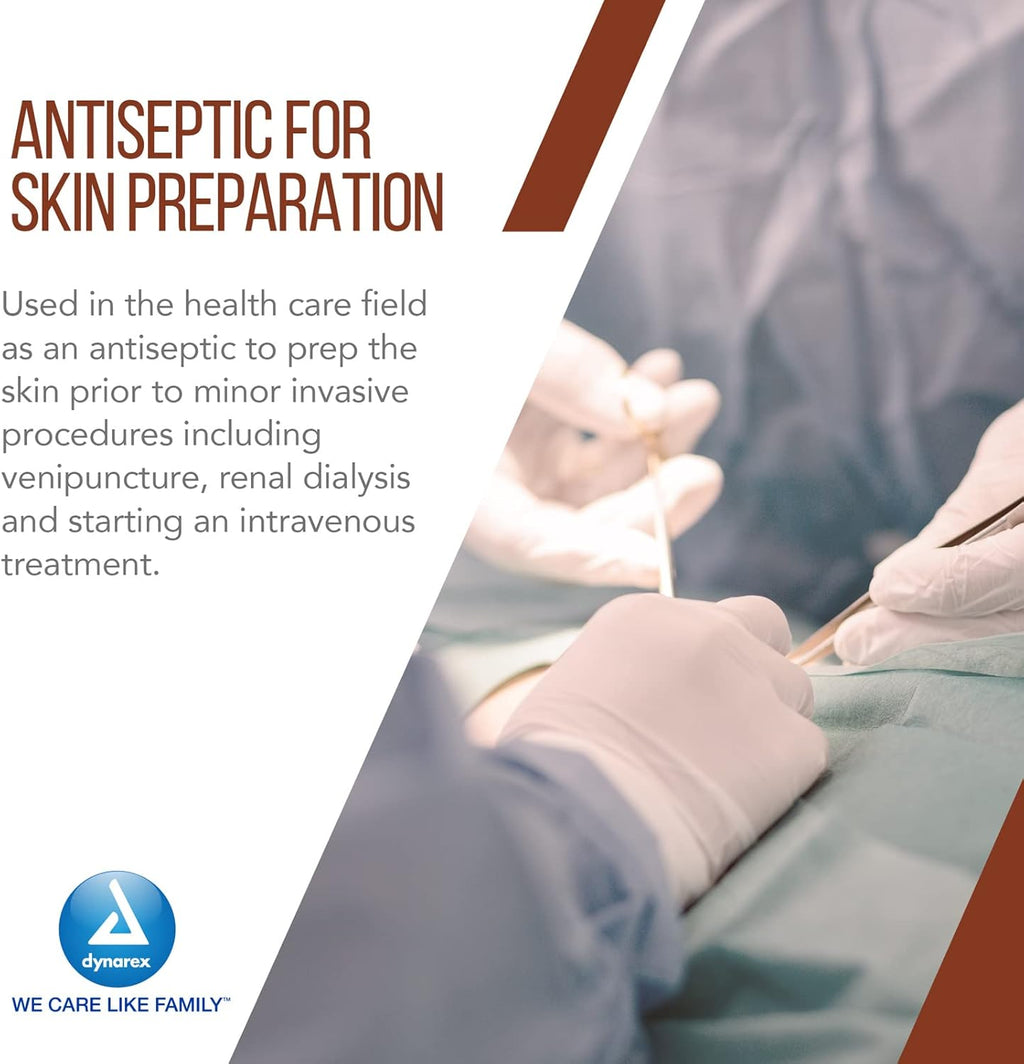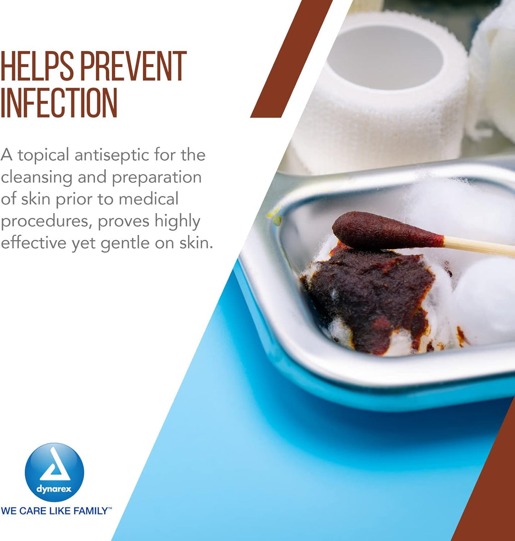 • EFICAZ PERO SUAVE: el uso de la solución de preparación de yodo povidona Dynarex, como un antiséptico tópico para la limpieza y preparación de la piel antes de procedimientos médicos, demuestra ser altamente eficaz y a la vez suave para la piel.
