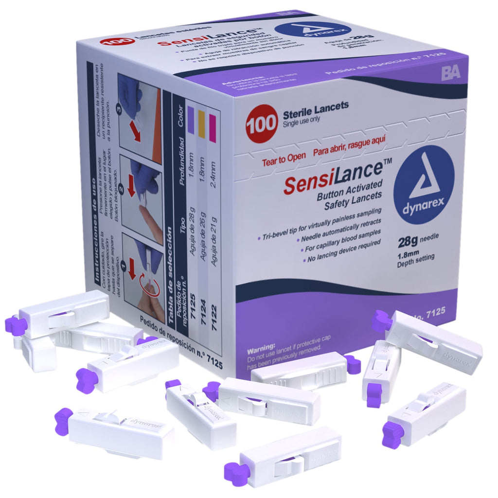 Las lancetas de seguridad Dynarex son lancetas de alta calidad y grado médico, diseñadas para la toma de muestras de sangre capilar, pruebas diagnósticas y el control individual de la glucemia. Están precargadas, lo que elimina la necesidad de dispositivos de punción adicionales. La aguja estéril de triple bisel cuenta con una funda protectora retráctil para reducir el riesgo de pinchazos. Disponibles en varios calibres.