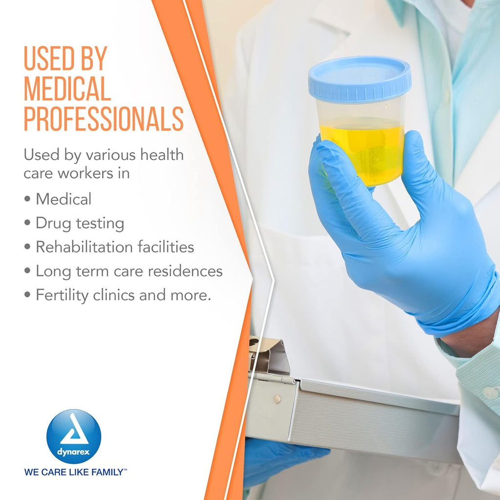- UTILIZADO POR PROFESIONALES MÉDICOS: Los contenedores de muestras Dynarex son estériles y son utilizados por diversos trabajadores de la salud en instalaciones médicas, de pruebas de drogas y de rehabilitación, residencias de cuidados a largo plazo, clínicas de fertilidad y durante visitas de atención médica domiciliaria.