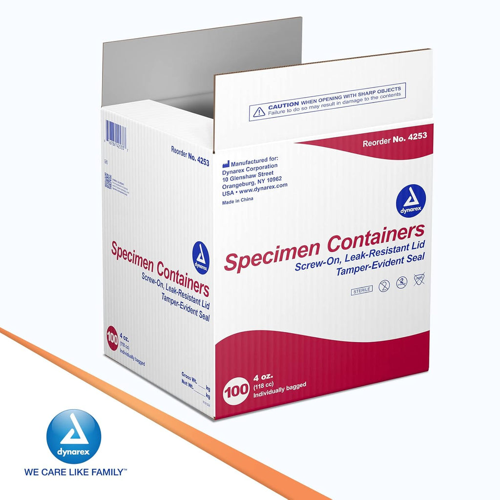 Los contenedores de muestras de 4 oz (caja de 100) de Dynarex ayudan a proteger sus muestras para realizar pruebas precisas.