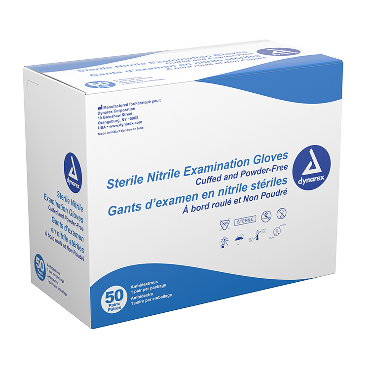 Los guantes de examen estériles de nitrilo Dynarex son de primera calidad y sin polvo, fabricados para una protección y un rendimiento óptimos. Estos guantes ambidiestros están diseñados con palmas texturizadas para un mejor agarre y puños con reborde para una fácil colocación. Tienen un grosor mínimo de 2 milésimas de pulgada para una mayor sensibilidad táctil. Estos guantes de nitrilo se ajustan firmemente a la muñeca y se adaptan a la mano para prevenir la fatiga física. Se presentan en paquetes individuales con apertura desprendible para una higiene óptima. Son ideales para una amplia variedad de entornos, como centros médicos, servicios de emergencias médicas (SME) y fuerzas del orden, centros de atención a largo plazo y más.