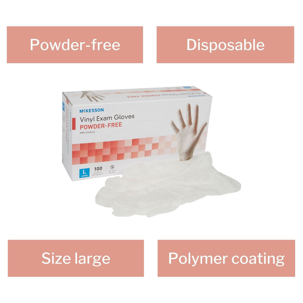 • Los guantes de examen McKesson están hechos de vinilo resistente a desgarros y perforaciones.