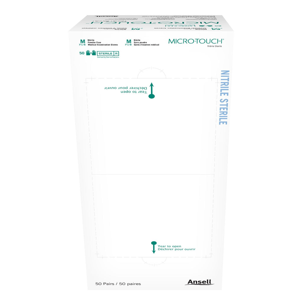 • Los guantes de examen estériles Micro-Touch® cuentan con un puño extendido de 12 pulgadas y puntas de los dedos texturizadas, lo que proporciona una protección de barrera superior y agarre en un guante de examen estéril.