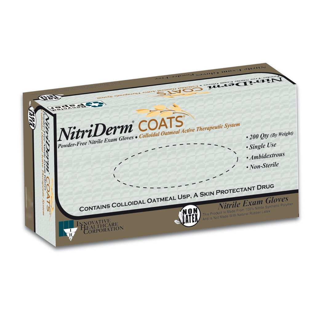 Question: What sizes and fit options are available for Exam Glove NitriDerm COATS Small NonSterile Nitrile Standard Cuff Length Fully Textured White Chemo Tested?