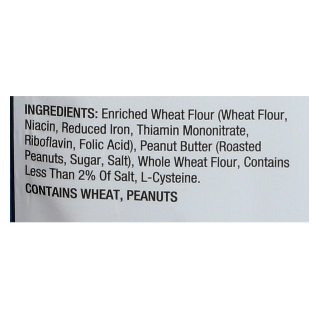 Ingredientes: harina de trigo enriquecida; harina de trigo; niacina; hierro reducido; mononitrato de tiamina; riboflavina; ácido fólico; mantequilla de cacahuete; cacahuetes tostados; azúcar; sal; harina integral; contiene menos del 2% de sal; l-cisteína.