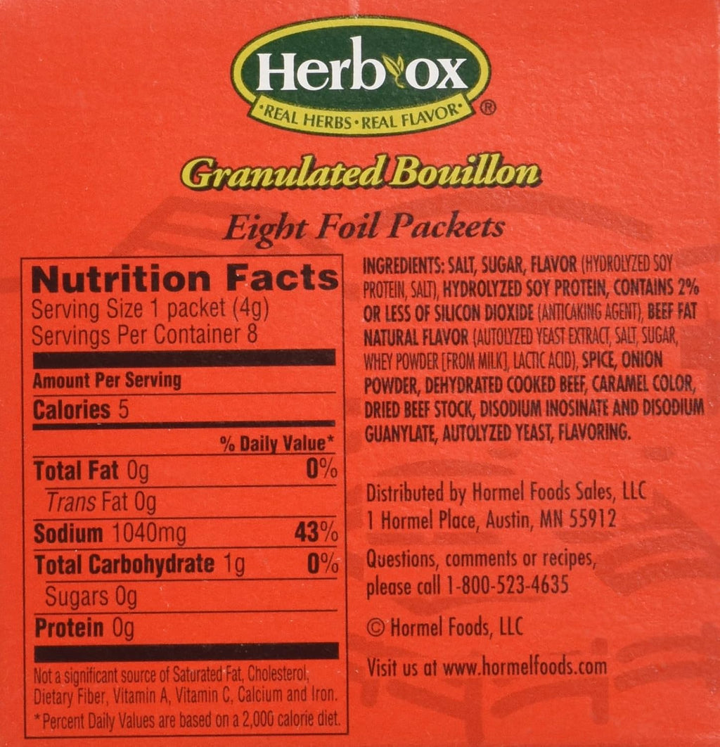 Información sobre la cantidad: CALDO DE CARNE SIN GLUTEN HERBOX (50/CAJA 6CAJAS/CAJA)