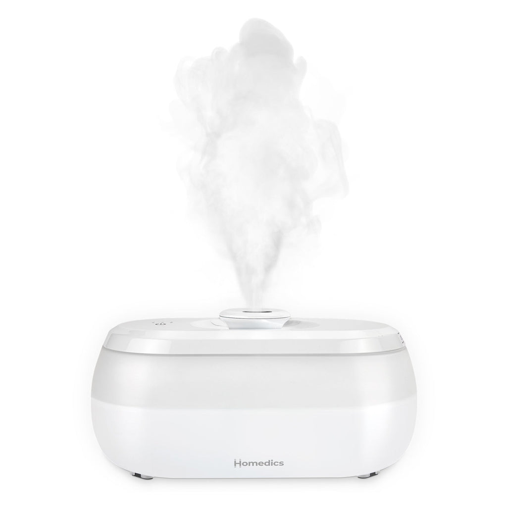 • (1) Humidificador ultrasónico Homedics CMTF14, (3) Almohadillas de aceites esenciales, (1) Cartucho de desmineralización, (1) Adaptador de CA, (1) Garantía limitada de 2 años