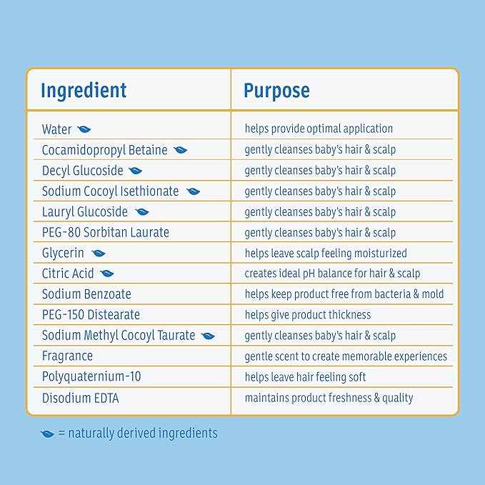 • Proporciona una limpieza suave y delicada que no irritará los ojos de su bebé durante la hora del baño.