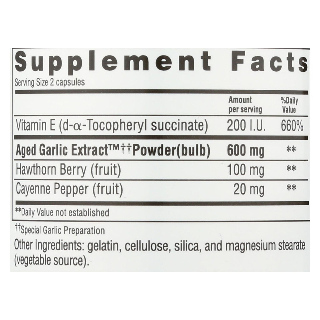 Kyolic fórmula 106 para la circulación es un suplemento de ajo orgánico sin olor, especialmente formulado con extracto de ajo, vitamina E, cayena y espino para mantener una circulación saludable. Un frasco de Kyolic contiene 200 cápsulas elaboradas sin colorantes, saborizantes, conservantes ni azúcares artificiales.