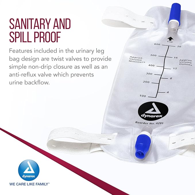 Mediano. 600 ml con válvula. Caja de 12. * Construcción de vinilo duradera, suave y cómoda que proporciona un rendimiento y una comodidad óptimos. * La válvula proporciona un cierre simple y antigoteo. * La válvula antirreflujo evita el reflujo de orina. * Las correas fáciles de usar proporcionan una sujeción segura a las piernas. * Ruta de fluido estéril. * Con válvula giratoria. * * Se conecta directamente al catéter; no requiere tubos. * No reutilizable.