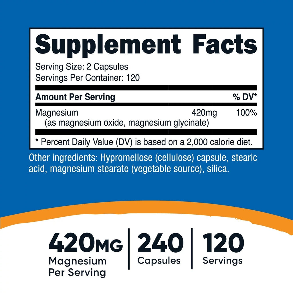 • 240 cápsulas de magnesio por frasco (120 porciones)