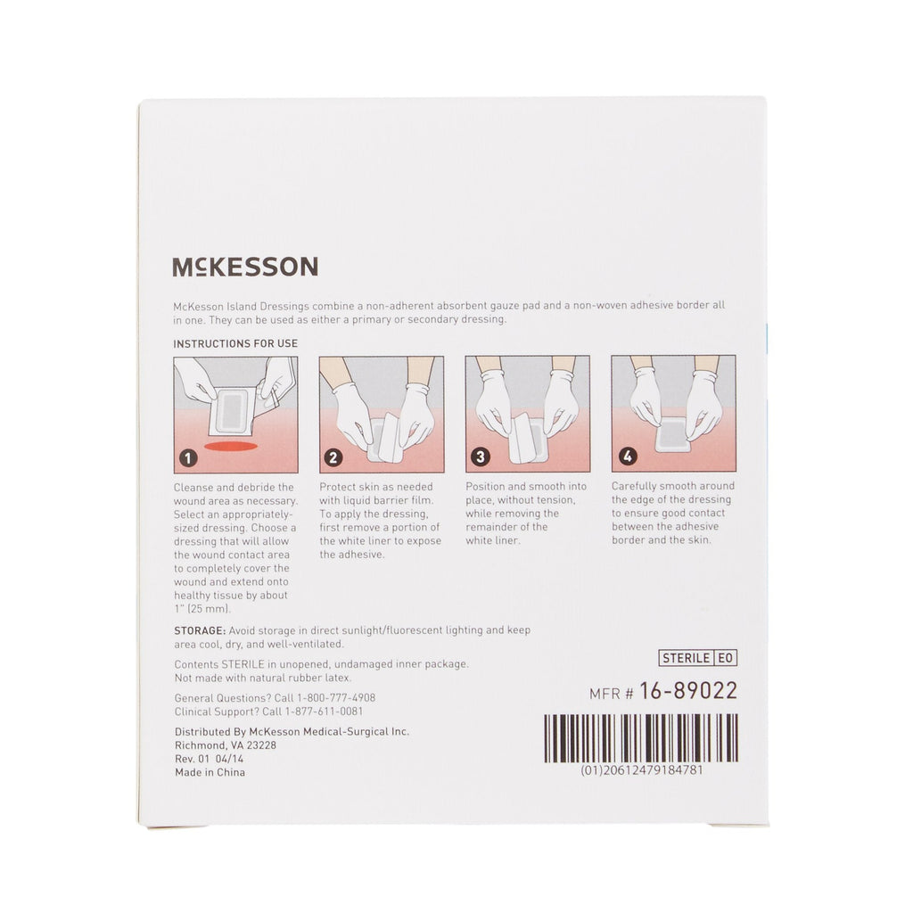 • Apósito de 2 x 2 pulgadas con almohadilla de 1 x 1 pulgada