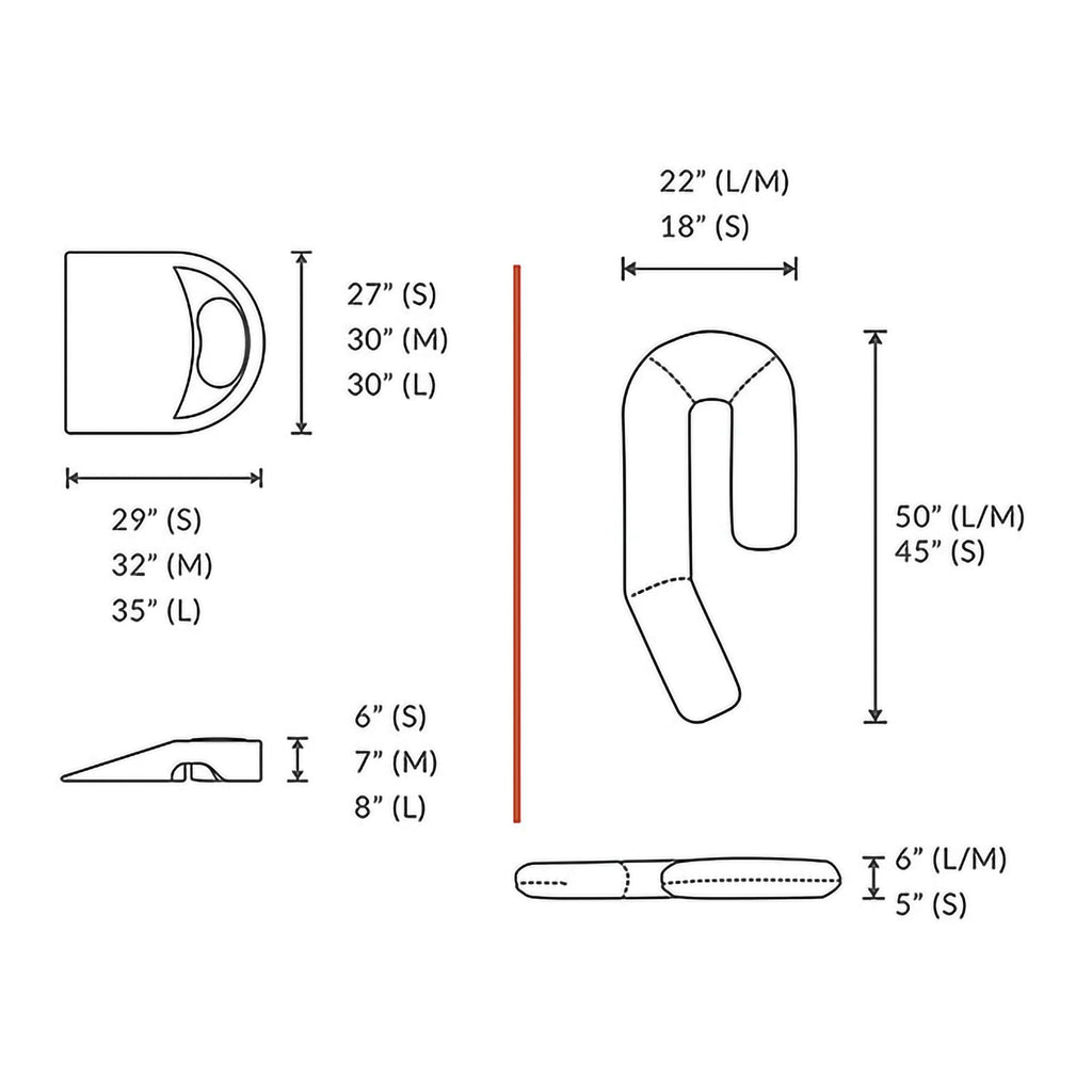 • Almohada corporal de 22 pulgadas de ancho x 50 pulgadas de profundidad x 6 pulgadas de alto