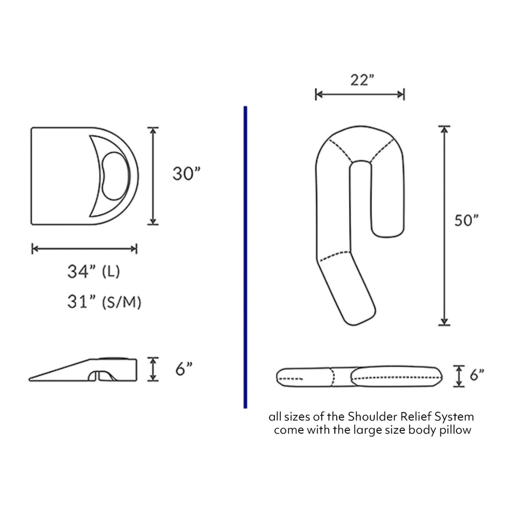 • Incluye cuña para aliviar el hombro, almohada corporal terapéutica, almohada insertable y fundas extraíbles y lavables.