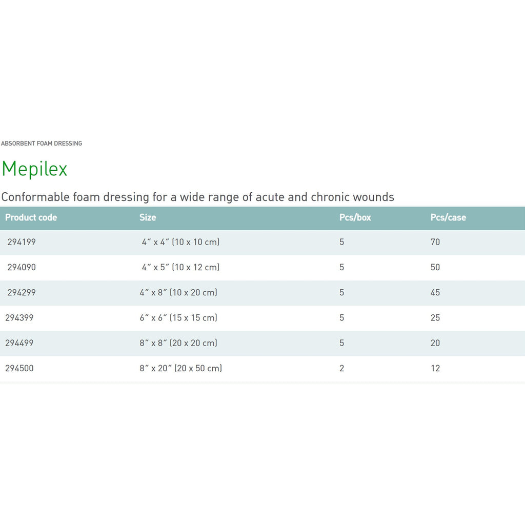 • Mepilex es un apósito de espuma adecuado para una amplia gama de heridas, como úlceras venosas de las piernas, úlceras por presión o úlceras diabéticas.