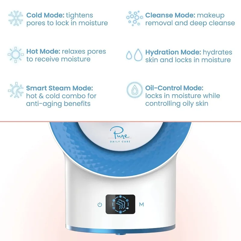 • 6 modos clínicos para resultados rápidos y fáciles: Aborda problemas como piel seca, grasa, envejecida y propensa a brotes con modos calibrados con precisión. En la pantalla LCD digital, selecciona entre los modos Frío, Limpieza, Calor, Hidratación, Control de Grasa y Vapor Inteligente, que utiliza una potente terapia combinada de calor y frío basada en protocolos estéticos de primera clase. Verás una piel radiante y radiante rápidamente, sin irritación ni sequedad.
