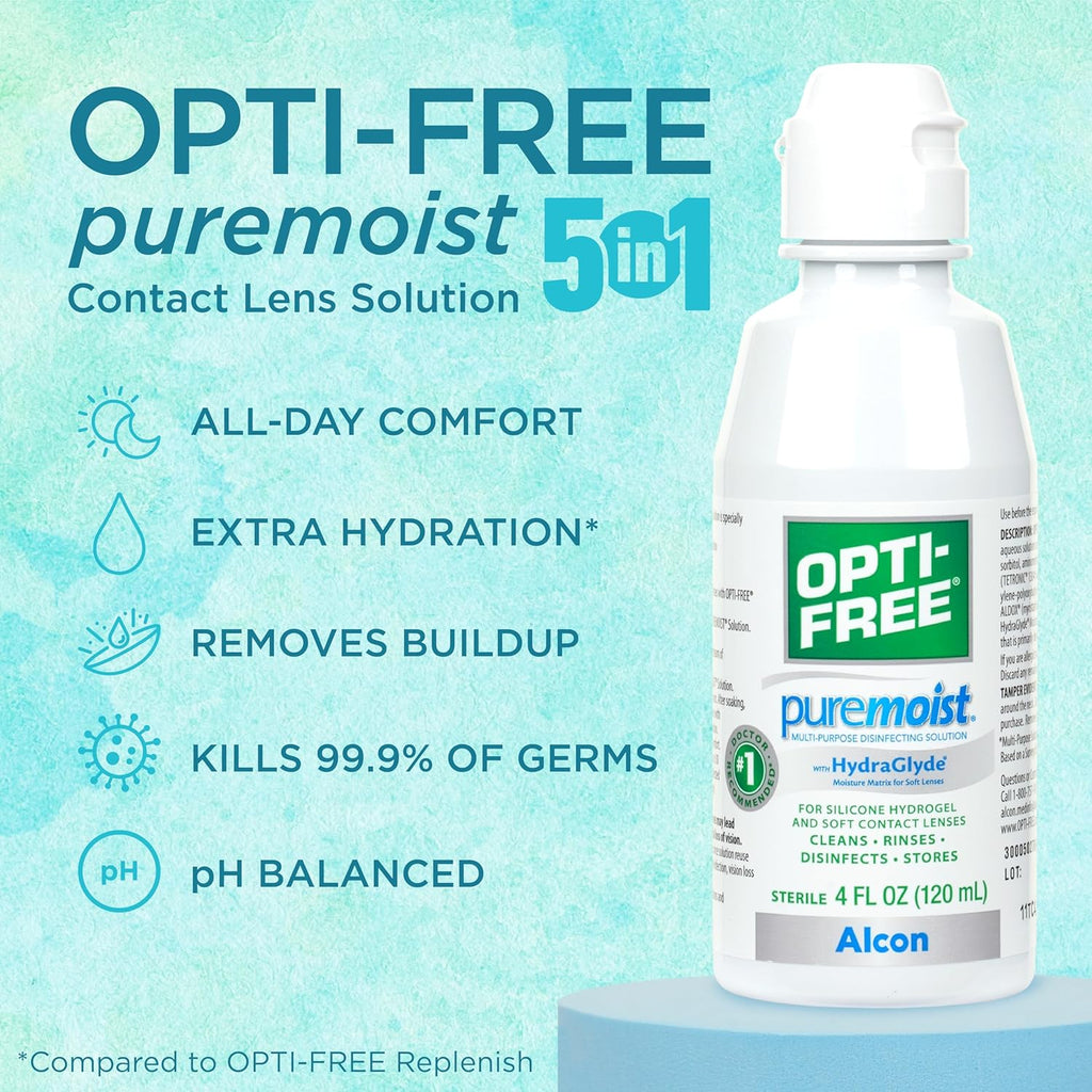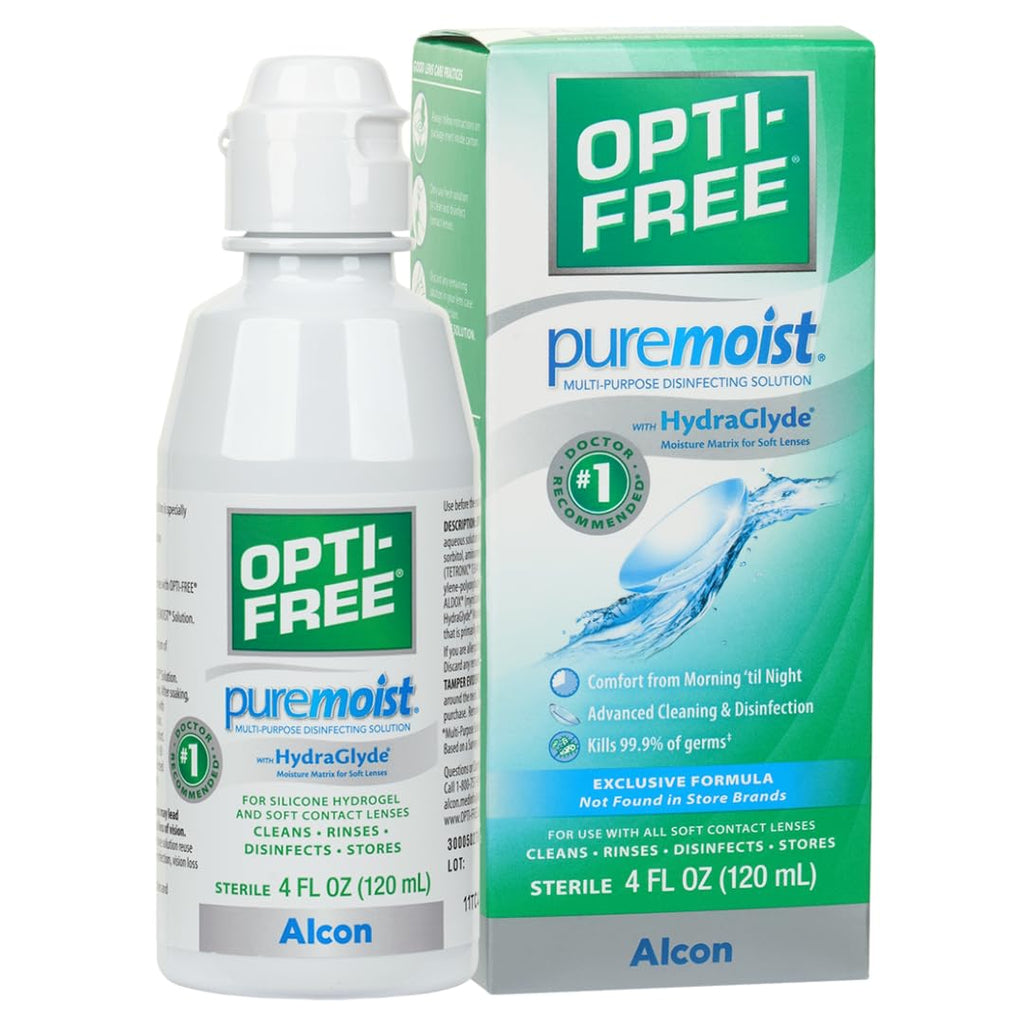 • Opti-Free Puremoist limpia, enjuaga y desinfecta mientras rodea sus lentes con un colchón de humedad para que pueda usar sus lentes de contacto blandos todo el día sin depósitos ni residuos que interfieran con su comodidad.