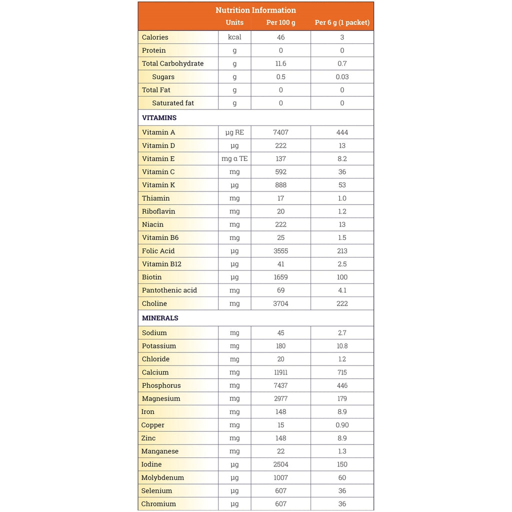 Información sobre la cantidad: POLVO, FRUITIVITS 6GM ORGÁNICO (30/CAJA)