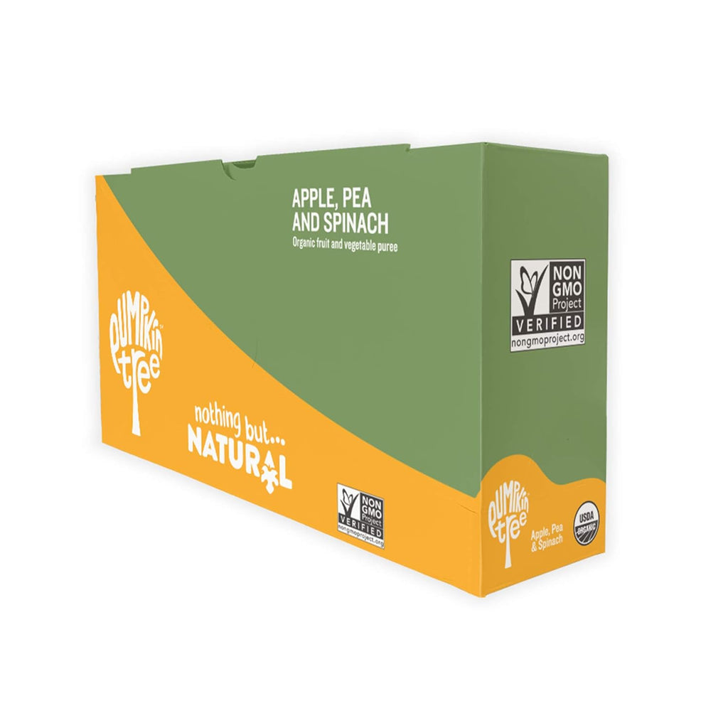 El snack orgánico de guisantes, espinacas y manzana de Pumpkin Tree cuenta con certificación orgánica del USDA y está elaborado con frutas y verduras puras. Cada sobre de 123 g de guisantes, espinacas y manzana de Pumpkin Tree se elabora sin sal, azúcar ni agua añadidos. Una porción de un sobre aporta 3 g de fibra, 2 g de proteína y el 35 % del valor diario recomendado de vitamina C.
