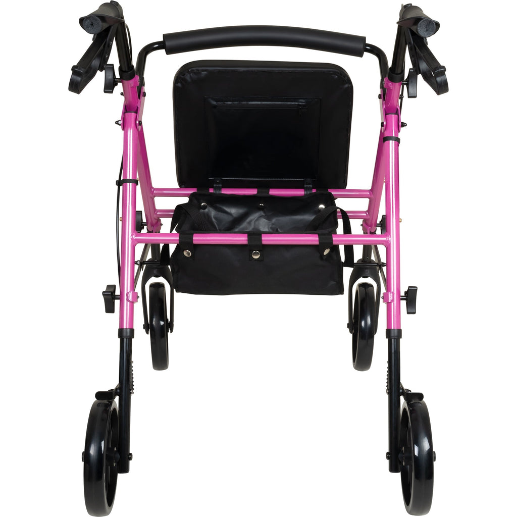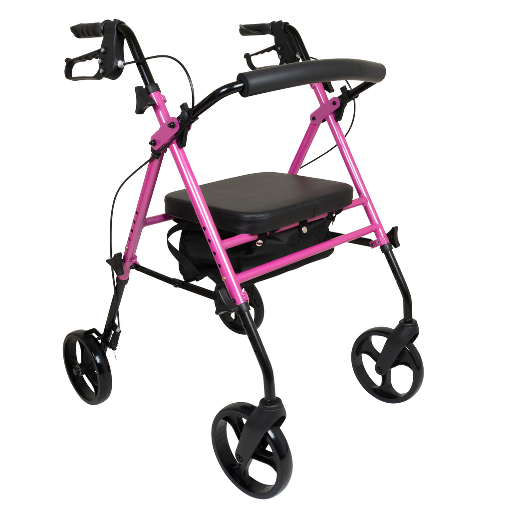 El elegante andador de aluminio ProBasics Deluxe con altura ajustable presenta un diseño único que permite al usuario ajustar la altura del asiento y el manillar a sus preferencias para máxima comodidad y un ajuste universal (se ajusta de tamaño infantil a adulto con un solo andador). Este ligero andador cuenta con frenos de mano ergonómicos fáciles de usar y ruedas de 20 cm para una gran maniobrabilidad y estabilidad. Su asiento abatible acolchado sin costuras, con compartimento con cremallera y una amplia bolsa de almacenamiento de nailon, mantiene sus pertenencias privadas y protegidas.