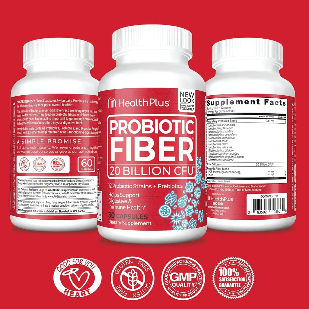 La fibra probiótica ayuda a nutrir su colon con lo que necesita para mantenerse saludable: fibras prebióticas y un espectro equilibrado de 12 cepas probióticas.