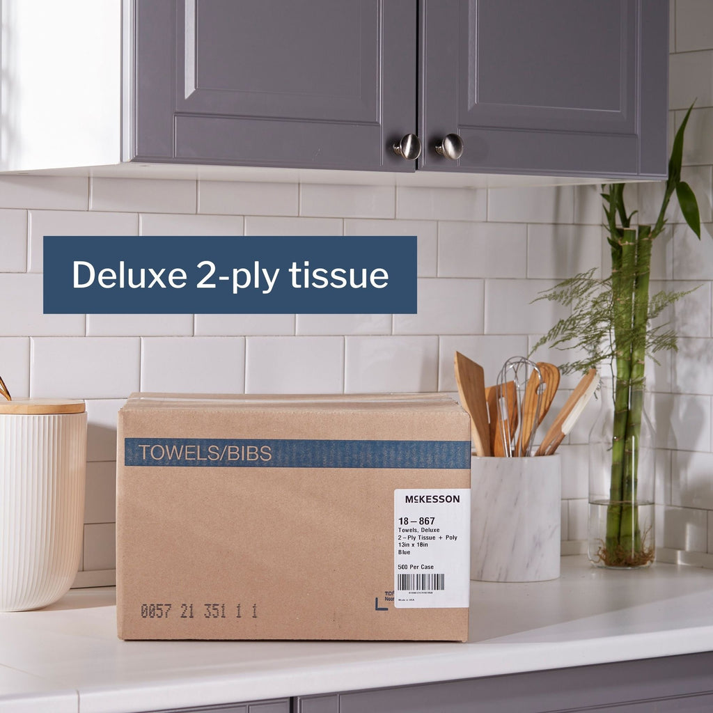 • Las toallas de procedimiento McKesson tienen un diseño de dos capas y un respaldo de polietileno para una resistencia confiable.