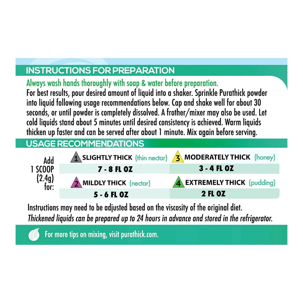 • El espesante natural Purathick espesa líquidos fríos y calientes para personas que requieren una dieta modificada, comúnmente recomendado para personas con dificultades para tragar, también conocidas como disfagia.
